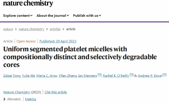 为第一署名单位在《Nature Chemistry》杂志发表,我院教师童再再副教授为论文第一作者,英国伯明翰大学Rachel O’Reilly教授,Andrew Dove教授,加拿大维多利亚Ian Manners教授为共同通讯作者。