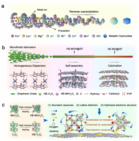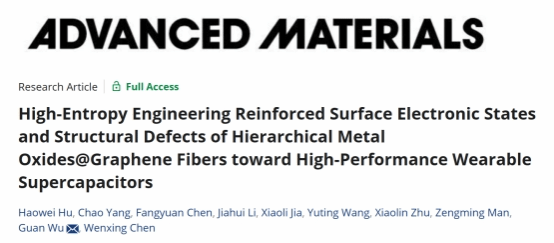 该工作从设计纤维电极有序微结构和高电化学活性入手,以强化界面法拉第电荷转移、离子传质、赝电容存储为目标,构筑了高熵掺杂金属氧化物@石墨烯复合纤维 (HE-MO@GF) 材料,用于高能量密度可穿戴超级电容器研究。该研究成果于发表在国际材料顶级期刊《Advanced Materials》上 (High-Entropy Engineering Reinforced Surface Electronic States and Structural Defects of Hierarchical Metal Oxides@Graphene Fibers towards High-Performance Wearable Supercapacitors, Advanced Materials 2024, 2406483)。该论文的通讯作者是无码a片