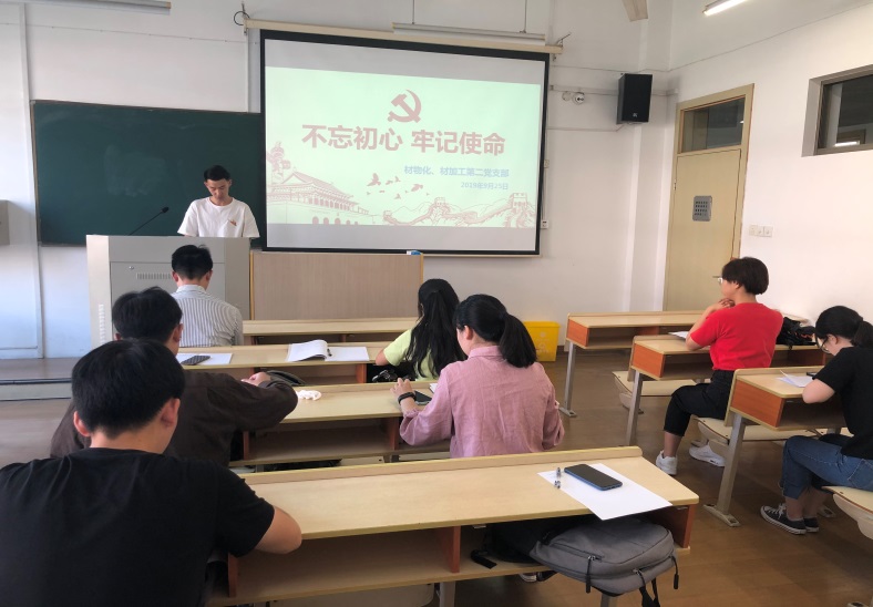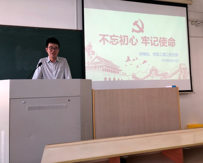 2019年9月25日,为了加强支部内各位党员的党性修养,同时也为了响应我校“初心•故事”主题活动的号召,材物化、材加工第二党支部在支部书记纪律律同志的组织下召开了本支部红色故事分享会。会议上支部所有成员都积极的讲述了自己所熟知的红色故事。