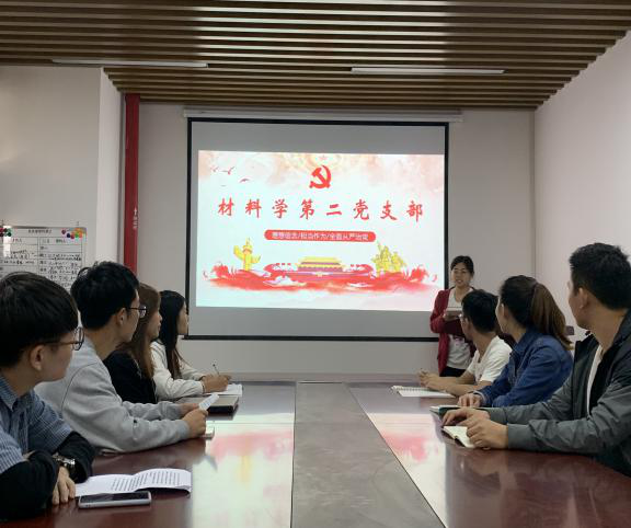 10月23日材料学第二党支部以理想信念、担当作为、全面从严治党为主题开展教育。“必须把坚定理想信念作为开展党内政治生活的首要任务。全党同志必须把对马克思主义的信仰、对社会主义和共产主义的信念作为毕生追求,坚定对中国特色社会主义的道路自信、理论自信、制度自信、文化自信。”自信源于认同,当代中国共产党人必须要在坚定的理想信念之上,筑牢全面从严治党的思想基础。共产主义理想信念是共产党人安身立命的根本。中国共产党从诞生之日起就把马克思主义写在自己的旗帜上,把实现共产主义确立为最终目标。坚定的理想信念必须建立在对马克思主义的深刻理解之上。只有真正理解了社会主义、共产主义的完整定义,并把系统掌握马克思主义作为看家本领,不断提高马克思主义思想觉悟和理论水平,才能保持对远大理想和奋斗目标的清醒认知和执着追求,以实际行动让广大人民群众感受到理想信念的强大力量。