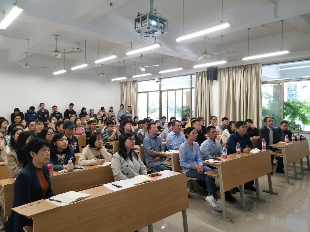 随教授首先指出天然可再生高分子材料来源广泛,可再生,可降解,易于改性,对其进行深加工以提供高附加值产品具有重要的经济和社会意义。接着从纤维素衍生物、再生纤维素、纳米纤维素及纤维素织物整理等方面,总结了自己的研究成果。隋教授的研究进一步拓展了材料在纺织印染、复合材料、生物医药、污染治理、食品、化妆品等领域的应用,具有较高的学术价值。报告会座无虚席,隋教授与师生进行了充分的互动交流与探讨,现场学术气氛热烈。