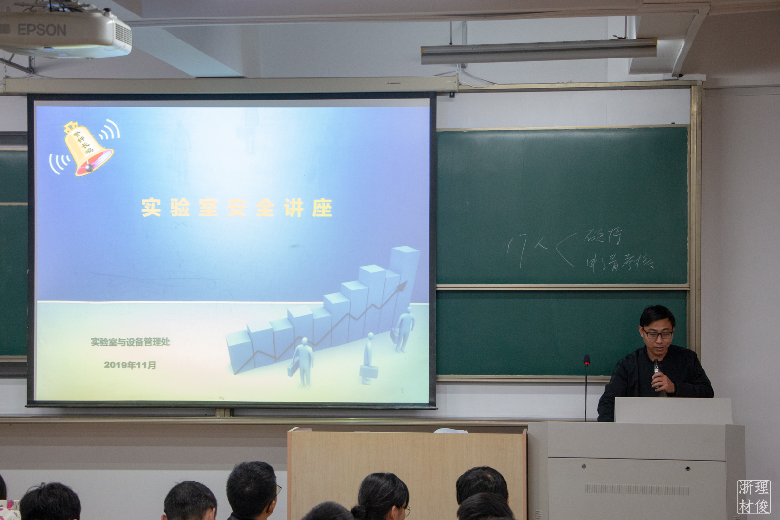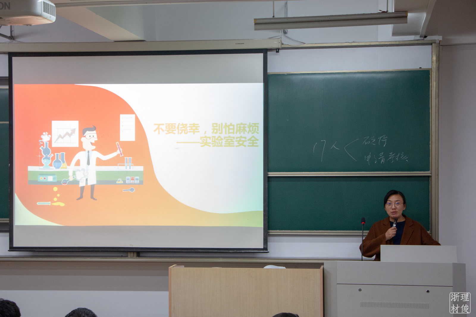 张明以“不要侥幸,别怕麻烦”为主题,结合身边实事和新闻热点,详细介绍了实验室安全的相关注意事项。