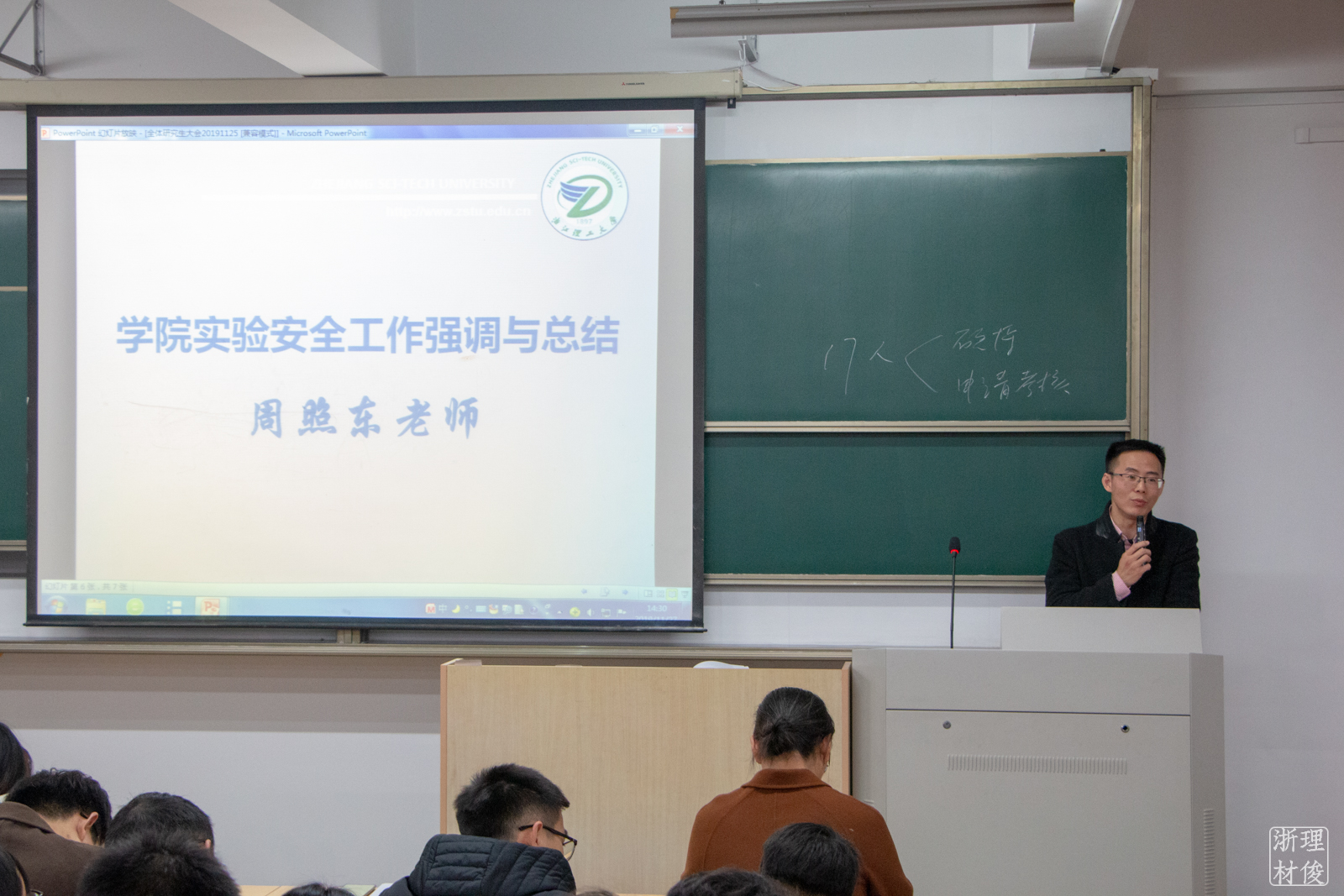 在安全教育大会上,王江老师用一些鲜活的案例,强调安全是一切的基础,明确了研究生接受安全教育的重要性与必要性。