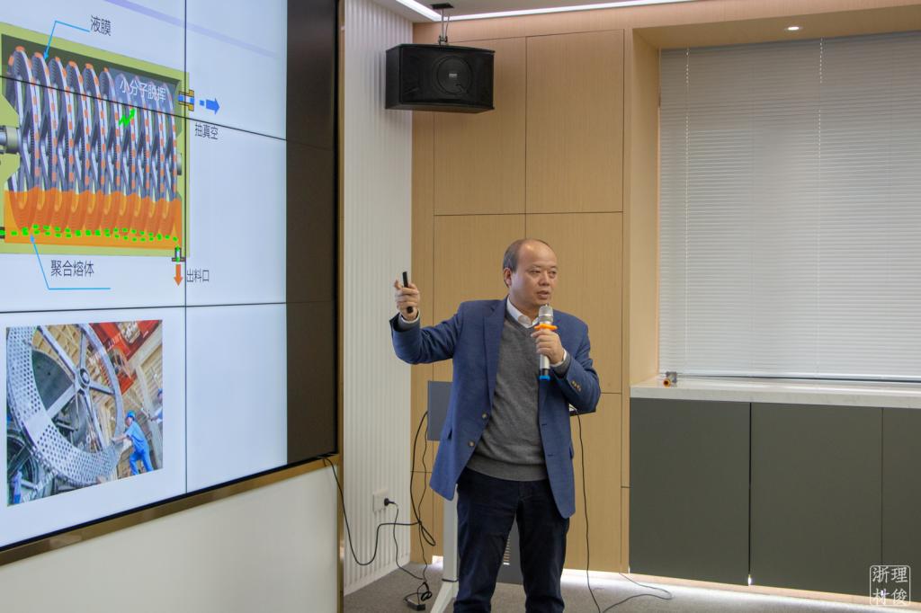 随后,陈文兴院士分别从聚酯反应、高黏聚酯熔体制备、创新脱挥强化机理、建立分子量极其分布测试方法、打通直通式纺丝工艺流程、涤纶工业丝纺丝结构演变等七个方面详细讲解了他的学术研究进展和研究成果。在回忆科研道路上遇到的艰辛,他勉励在座的老师和学生,要坚定奋斗意志,甘于坐冷板凳,不断取得新进步,创造更大的成果!陈院士指出,我们在保持学科优势的同时,还要深刻认识智能技术在新一轮科技革命和产业变革中的重大意义,勉励大家积极开展针对性、前瞻性、综合性的研究,为学校学科发展提供更多、更大的创新支持。