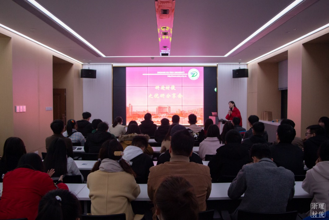 -科研与创新中心主办的“研途材俊之优研分享汇”活动于2019年12月5日晚在24号楼415报告厅举行。活动邀请到四位实践丰富、科研卓越的优秀分享者,他们分别是17级硕士研究生李想、19级博士研究生顾艳和齐晓明以及17级硕士研究生张永和。辅导员魏莉莉老师和近100名硕士研究生参加了本次交流会。