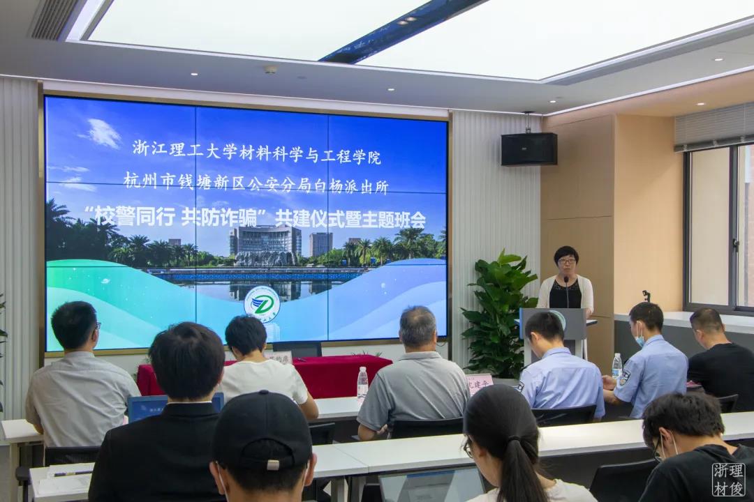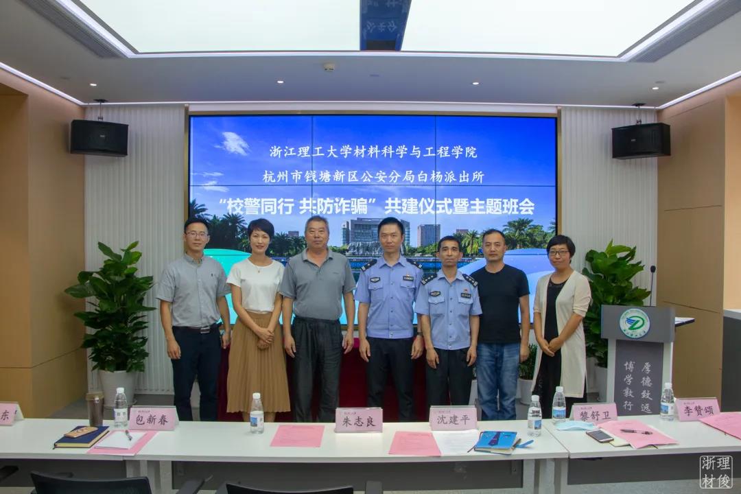 联合杭州市钱塘新区公安分局白杨派出所,在24号楼415报告厅举行“校警同行 共防诈骗”共建仪式暨诚信教育主题班会活动。杭州市钱塘新区公安分局白杨派出所教导员沈建平、民警黎舒卫,校保卫处处长朱志良、副处长包新春,无码a片