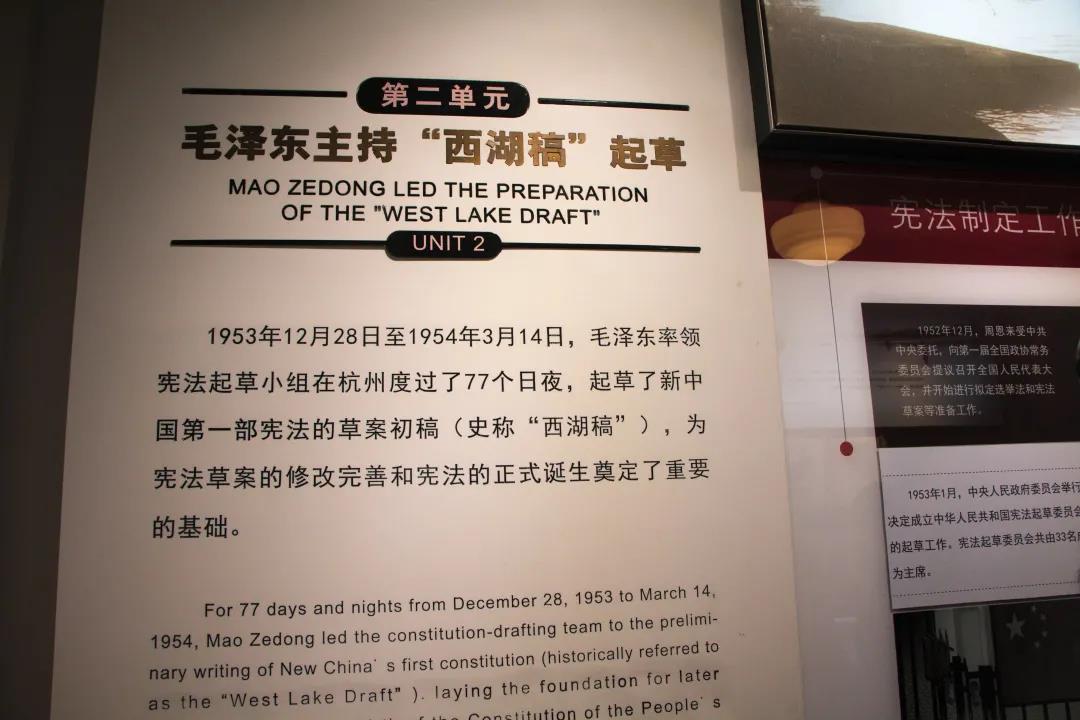 “五四宪法”历史资料陈列馆是我国第一家以宪法为主题的陈列馆。新中国第一部宪法“五四宪法”在这里起草。本次我院师生党员参观的是北山街馆区。北山街馆区所在的北山街84号大院30号楼是毛主席当年在杭州起草宪法时的办公地,有一幢平方和一幢二层楼房,有序厅、复原陈列和主题陈列三个部分组成,分为制定“五四宪法”的历史背景、毛泽东主持“西湖稿”起草、全国人民参与大讨论、“人民的宪法”获全票通过、“五四宪法”精神的传承与弘扬、全面实施宪法六个单元,主要讲述了“五四宪法”从起草、讨论、通过到实施的全过程。