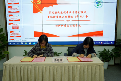 党风廉政建设责任书签订仪式暨纪检监察工作推进(学习)会在24-415举行。学院党委书记傅雅琴教授,全体纪委委员,各系和办公室主任,研究所所长,教工党支部书记等参加会议,会议由党委副书记、纪委书记周照东老师主持。