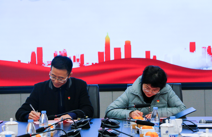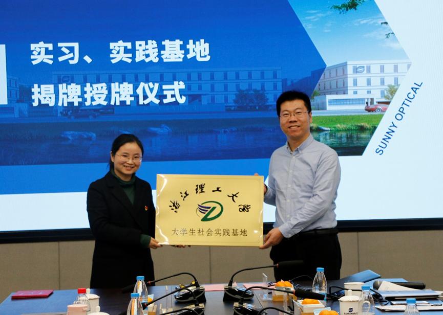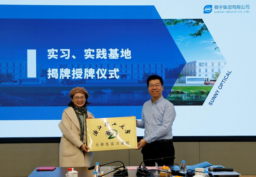 与舜宇光学科技(集团)有限公司在舜宇新基地B-1 一号会议室举行党建共同体签约揭牌暨党的十九届六中全会精神联学会议。