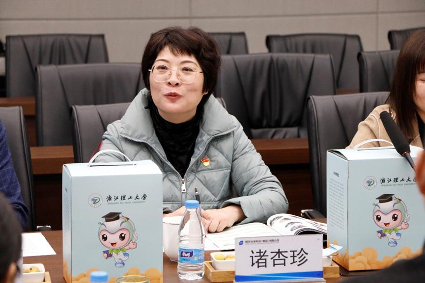 一行来企交流洽谈,对学院培养的优秀毕业生表示肯定和赞许,就企业发展现状、党群工作情况、未来发展规划等进行了全面介绍。招聘与配置课课长姜淑飘对舜宇集团产业规模、公司文化、晋升通道及福利待遇等基本情况进行了详细说明。