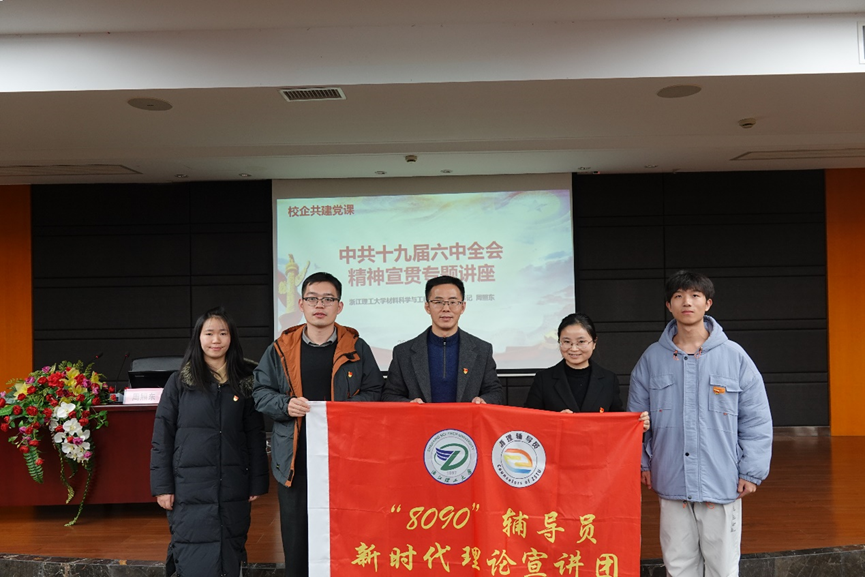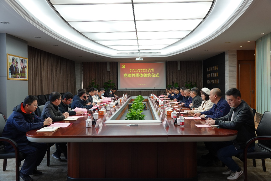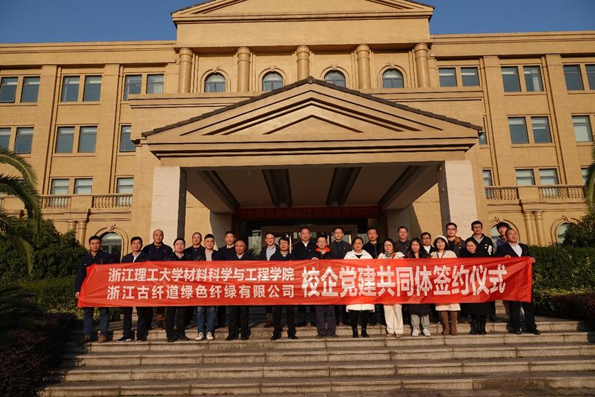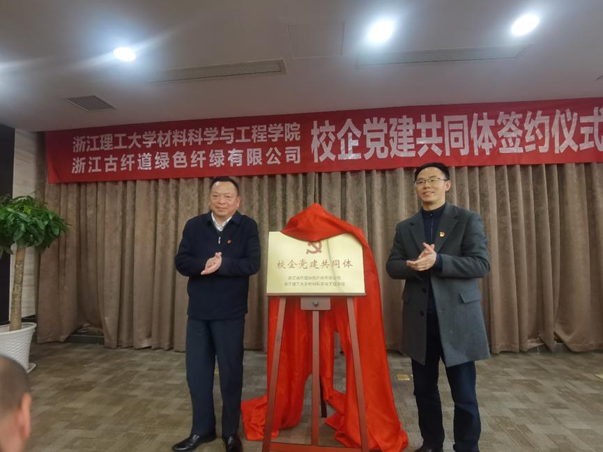 与浙江古纤道绿色纤维有限公司在古纤道全景会议室和三楼百人会议室分别举行党建共同体签约揭牌仪式和开展校企共建六中全会精神专题宣讲。古纤道公司党委书记、执行董事徐跃林,总经理金革,党委宣传委员、副总经理周茂林,党委生产委员、副总经理孙国林,总工程师杨志超、副总经理汪章雁,浙理工校友代表曾卫卫、骆科威等人,无码a片