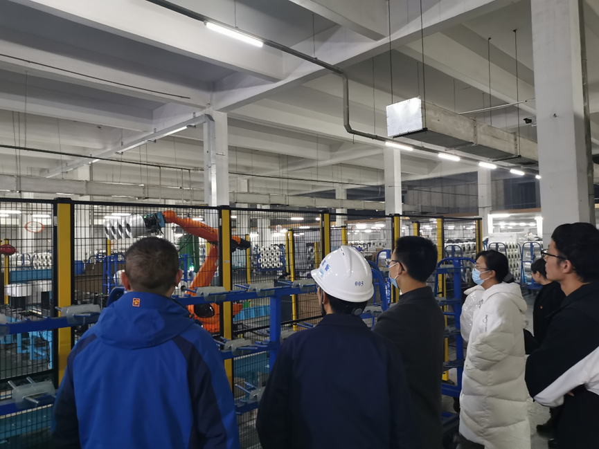 一行参观了企业车间,深入了解了企业在改性聚酯切片、差别化涤纶工业纤维材料的生产和发展情况。