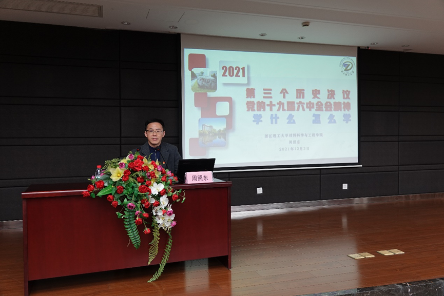 在校企共建党课暨党的十九届六中全会精神联学会上,周照东以《第三个历史决议和党的十九届六中全会精神:学什么 怎么学》为主题,面向古纤道公司部门负责人及以上管理人员讲授了一场党的十九届六中全会精神专题讲座,以“中国共产党的标签”为切入点,从理论逻辑、历史逻辑和现实逻辑三个维度分别论述了对《决议》的整体系统把握、与前两次决议的对比以及共同富裕在浙江省域范围的落地实践,周老师以详实的党史和生动的语言,向在座人员分享学习党的十九届六中全会精神的心得体会,受到与会人员好评。