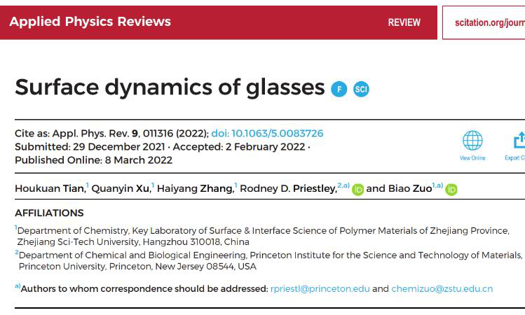 博士后流动站的田厚宽在国际物理领域知名期刊《应用物理评论》(Applied Physics Reviews;影响因子为19.2)发表了题为“Surface Dynamics of Glasses”的长篇综述文章,无码a片