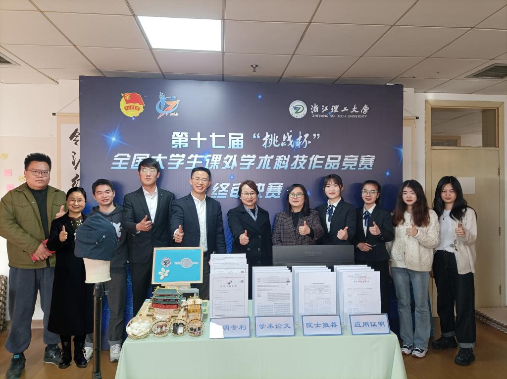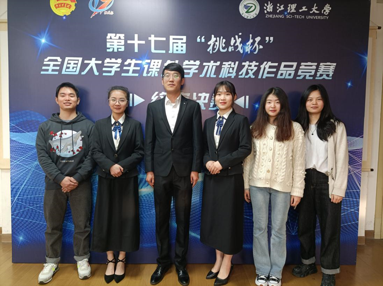 “基于界面‘微雕’构筑多级有序结构‘智造’柔性生理信号传感器”项目在八位成员历时三年的通力合作和指导老师余厚咏、李营战、陈祥的倾力指导中杀出重围,取得了学院挑战杯赛事历史新突破,获得第十七届“挑战杯”全国大学生课外学术科技作品竞赛国赛一等奖。