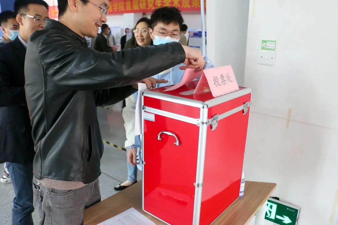开幕式结束后,校院领导、学院学术委员会成员和学生代表进行了研究生学术成果墙报展的评选投票,并与现场参展的研究生们进行了深入探讨和充分交流。