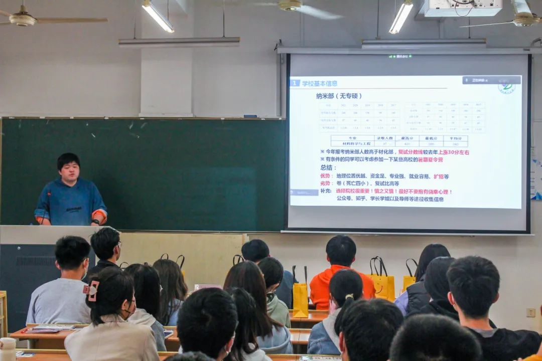 一是有传统,有底蕴:学院有着本硕博一条龙的培养体系,近年来我们的考研深造率也逐年递增,在这样的环境中,身为材料学子很自豪同时也有使命担当,在良好的传统下,期待19级学子再创佳绩。