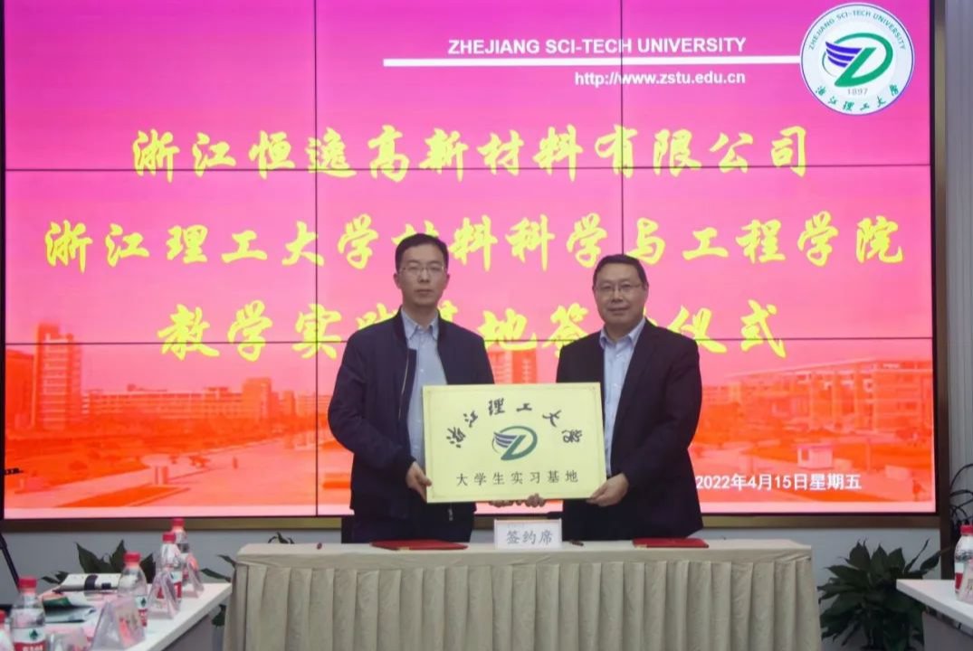 )与浙江恒逸高新材料有限公司联合举行大学生实习基地签约揭牌仪式。杭州市钱塘区人社局副局长范哲敏、工商联副主席应群颖, 人社局就业处主任周磊,恒逸集团人力资源部总经理薛丽莉、浙江恒逸高新材料有限公司总经理董庆奇及公司相关负责人,无码a片