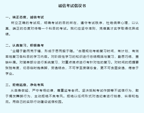 开展诚信考试倡议活动,通过线上推送进行宣传,呼吁广大材料学子以信复习,以诚考试。