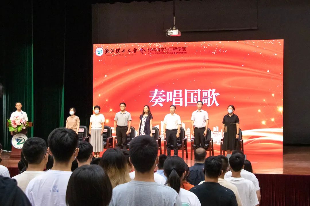 2022级新生开学典礼在学生活动中心小剧院举行。学院党委书记仰滢,院长张先明,副院长江国华、杨叶锋,学院党委委员、综合办公室主任魏莉莉,学院材料工程系主任金达莱,高分子材料系主任张明及全体新生班主任、行政办公室老师和2022级全体本科生、研究生出席活动。典礼由学院党委副书记周照东主持。