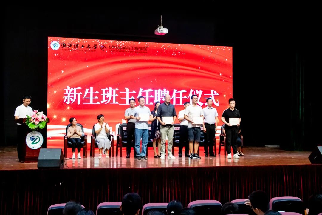 典礼伊始,举行新生班主任聘任仪式,台上就座领导为班主任们颁发聘书。今后他们将成为大学生健康成长的指导者和引路人,在“三全育人”的道路上发挥重要的作用。