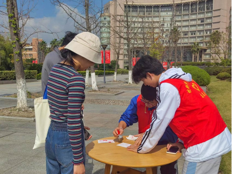 游校园,集“材”气。校友们从24号楼出发,经过6个设置的校园经典打卡点,戳章集“材”气。为了使校友们深入学习党的二十大精神和校史校情,学生活动中心打卡点和丝绸博物馆打卡点分别设计了二十大问答题和校史校情问答题,丰富了校友们的精神世界。校园内每一步、每一处都留下了属于校友们的痕迹。