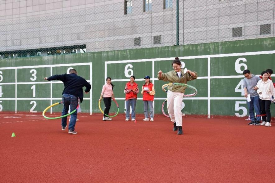 当天下午,校友、师生们三五结伴来到北田径场,进行着趣味运动会。转呼啦圈、夹弹珠、两人三足、拔河……各项运动有条不紊地开展,大家玩得不亦乐乎,共同度过了美好的快乐运动时光。