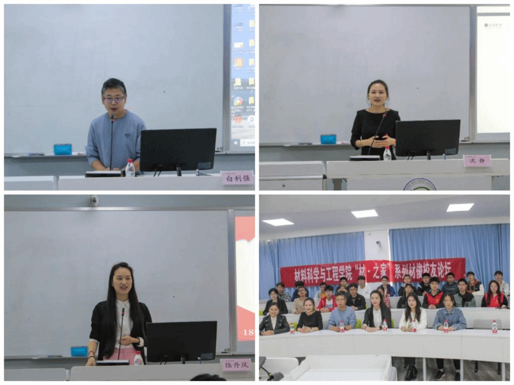 上午10点,“材·之家”系列材俊校友论坛在2S-343举行。学院邀请白利强、沈静、陆丹凤三位优秀校友依次分享了自己的人生经验、求学和求职经历,他们在分享中回忆起在母校的点点滴滴,向同学们讲述了许多工作、求学之外的事情。论坛上进行了广泛的校友师生交流,各位同学受益匪浅。