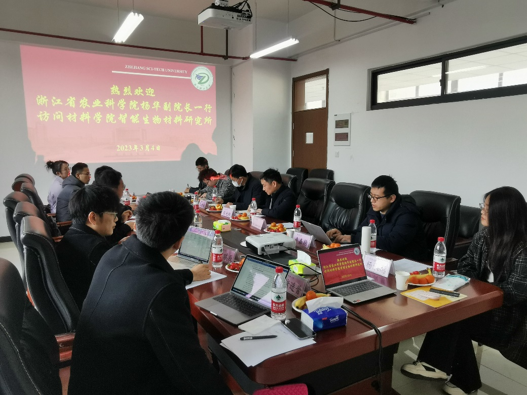 张先明院长对杨华副院长一行的来访表示热烈欢迎。他介绍了近年来学院在学科、人才培养、师资队伍、科学研究和国际交流等方面的情况。他表示材料与农业也有密切关联的学科方向,双方交叉合作、优势互补,希望学院与浙江省农业科学院能够加强交流与合作,拓展新型生物材料、高分子材料等在农业领域的应用。