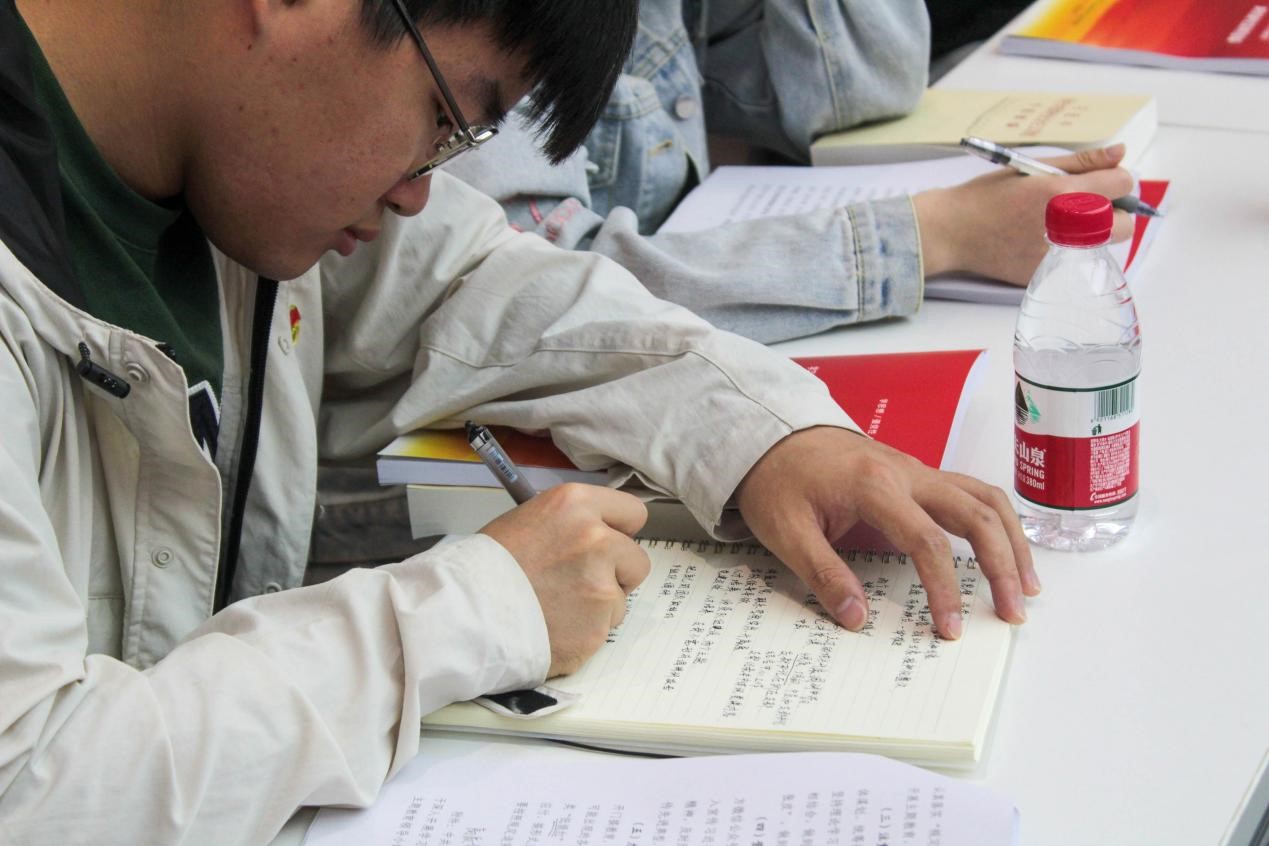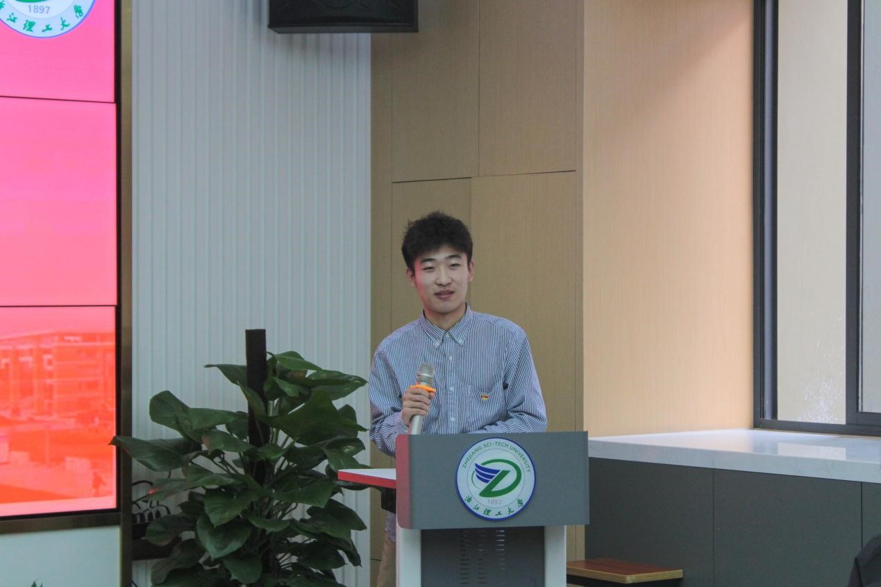 研究生孙旭在主题发言时表示,作为学生要认真学习贯彻习近平新时代中国特色社会主义思想,树立强烈的历史使命感和责任感,发扬实干、担当、创新的精神,努力成为新时代的高素质人才。