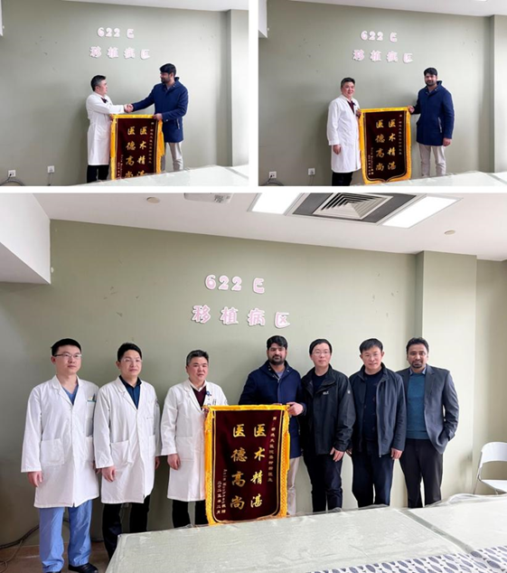杨叶锋教授、孔祥东教授、Zubair研究员一起和我院巴基斯坦籍留学博士生Asim Mushtaq携带感谢信及锦旗前往浙江大学医学院附属邵逸夫医院(钱塘院区)向蔡柳新主任医师及其团队成员表达了特别的感激之情。
