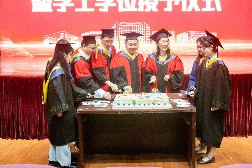 毕业,既是一段学习生涯的结束,也是新的征程的开始。需要纪念,也需要庆祝,为此,学院精心准备了蛋糕,学院领导和学生代表共同切下蛋糕,一起分享这份甜蜜和感动。
