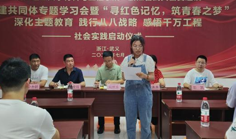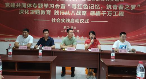 随后,7月3日,学院党委副书记周照东老师亲自带领其中一支“寻红色记忆,筑青春之梦”暑期社会实践团队出发,抵达了武义县茭道镇朱王村,与茭道镇领导们共同举行党建共同体专题学习会暨“寻红色记忆,筑青春之梦”深化主题教育、践行八八战略、感悟千万工程,社会实践启动仪式。