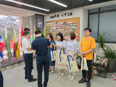 活动最后举行青年教师入职仪式,院长张先明及副书记周照东为新进校的老师们佩戴校徽,并送上学院准备的入职大礼包。