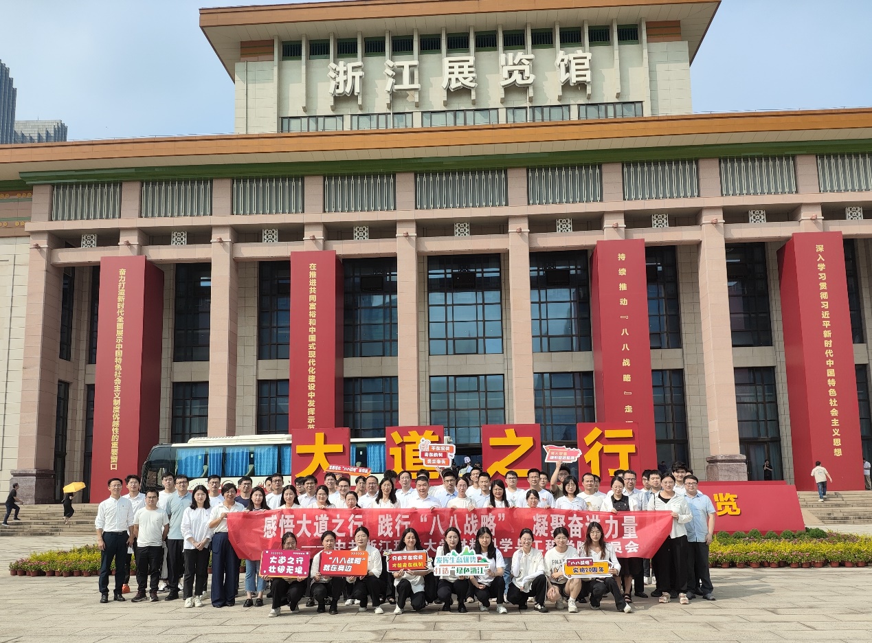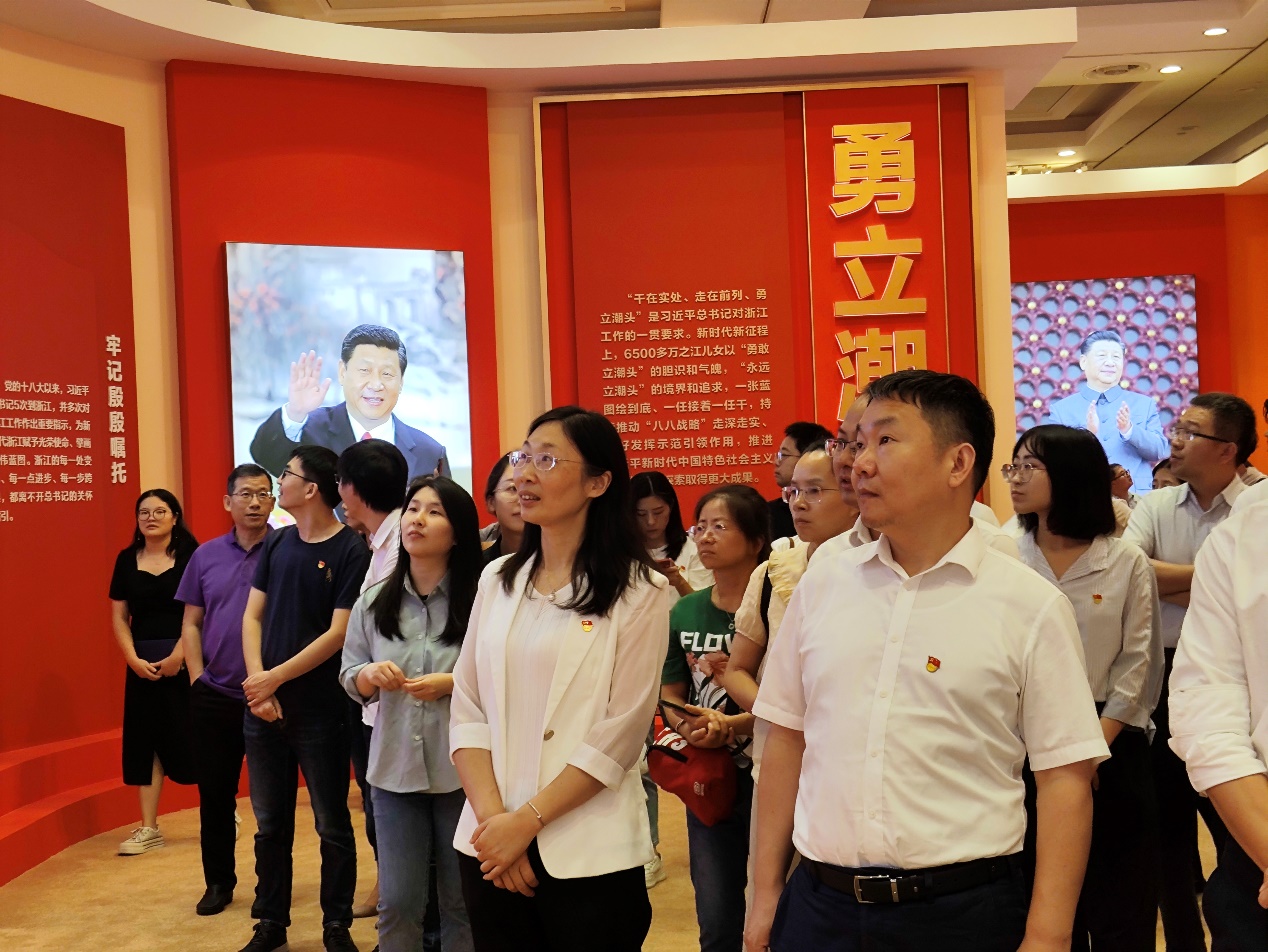 党委组织学院理论学习中心组全体成员、全体教工党员及部分学生党支部党员参观“大道之行—‘八八战略’实施20周年”大型主题展览,走入这段“时空之旅”,回顾浙江在“八八战略”指引下的步步跨越和精彩蝶变,深刻感悟“八八战略”历真理力量和实践伟力。