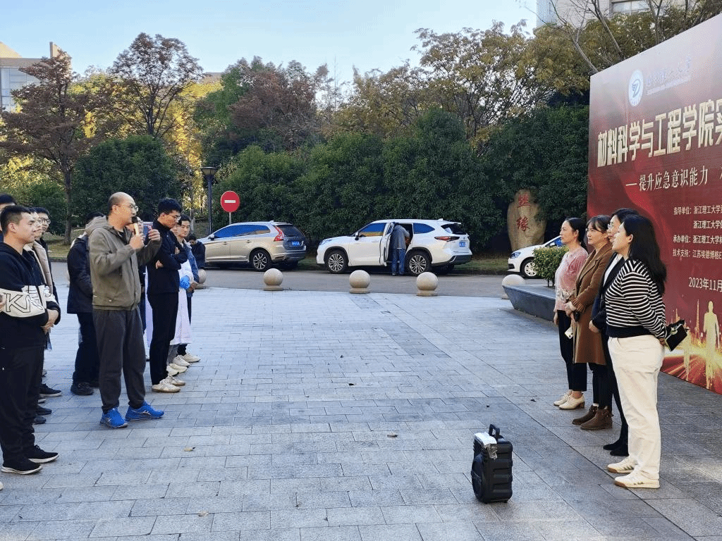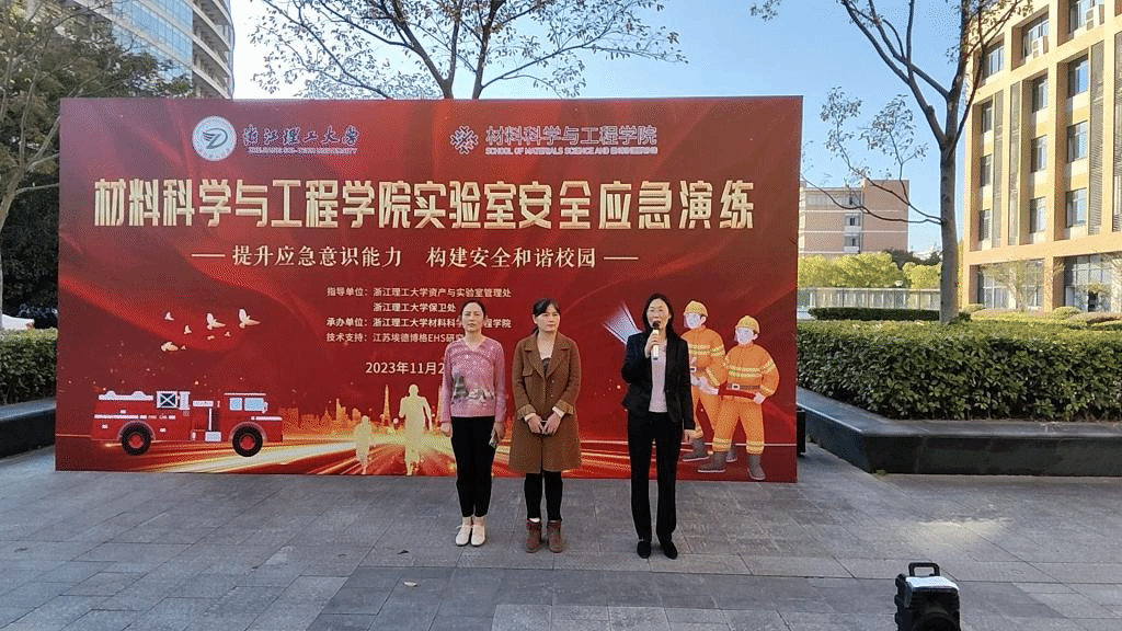 在24号楼组织进行了实验室安全事故应急及疏散演练活动。学校资产和实验室管理处、保卫处的相关领导及工作人员,与学院师生们共同参加了本次活动,江苏埃德博格EHS研究中心为本次活动提供了技术支持。