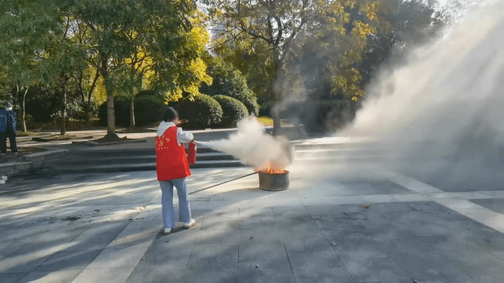 现场模拟了学生在实验过程中操作不慎引起烧杯内的酒精起火,同学们用灭火毯马上扑灭。随后又不慎将丙酮打翻,泼洒到学生身上和地面,造成丙酮泄露。实验室安全负责人收到学生报告后的第一时间立即做出应急响应,安排学生进行冲洗和救援,并报告学院领导和保卫处、资产和实验室管理处,学院领导马上启动危险化学品安全事故应急处理预案,安排学院师生紧急撤离,事故警戒,应急处理人员赶往现场处理。随着演练警报响起,各楼层师生也有序疏散到安全地带。整个过程紧张有序,衔接迅速,险情得到了有效控制,未造成环境污染和人员伤害。随后学院师生们还参加了真火灭火演练。