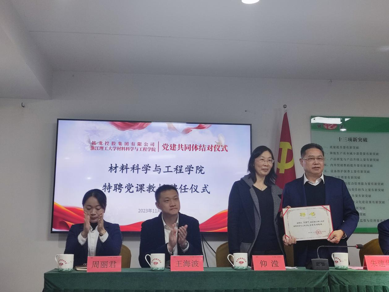 仰滢表示铭龙控股集团的主业与学院的专业契合度较高,校企双方前期有良好的产学研合作基础。她希望通过此次交流合作,努力实现“三联三共”,即通过党建联建、人才联育、科研联攻,达到资源共享、合作共赢、发展共谋,协同联动实现“一融四驱·聚链成材”材料党建品牌,以高质量党建引领高质量事业发展,为推动企业和地方经济发展贡献浙理材料力量。
