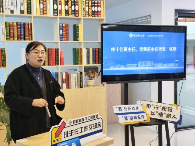 高分子系主任张明老师分享了自己面对学生的工作经验。她强调了大一是学生成长的关键时期,同时也是建立良好班级生态的关键时期,她建议班主任们要明确自身的职责和角色定位,抓好学生干部队伍建设工作,建立起良好的班级生态,建设特色明显的班集体。