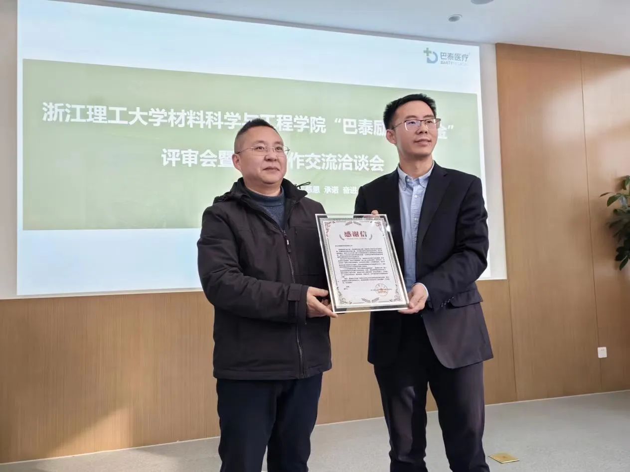 党委副书记、纪委书记周照东对巴泰医疗科技有限公司一直以来对学院教育事业发展、经济困难学生成长成才的支持与帮助表示感谢,向大家讲述了巴泰励志奖学金的设立初衷,希望广大同学心怀感恩,砥砺前行,学有所成,回报社会。并向巴泰医疗科技有限公司赠予感谢铭牌。