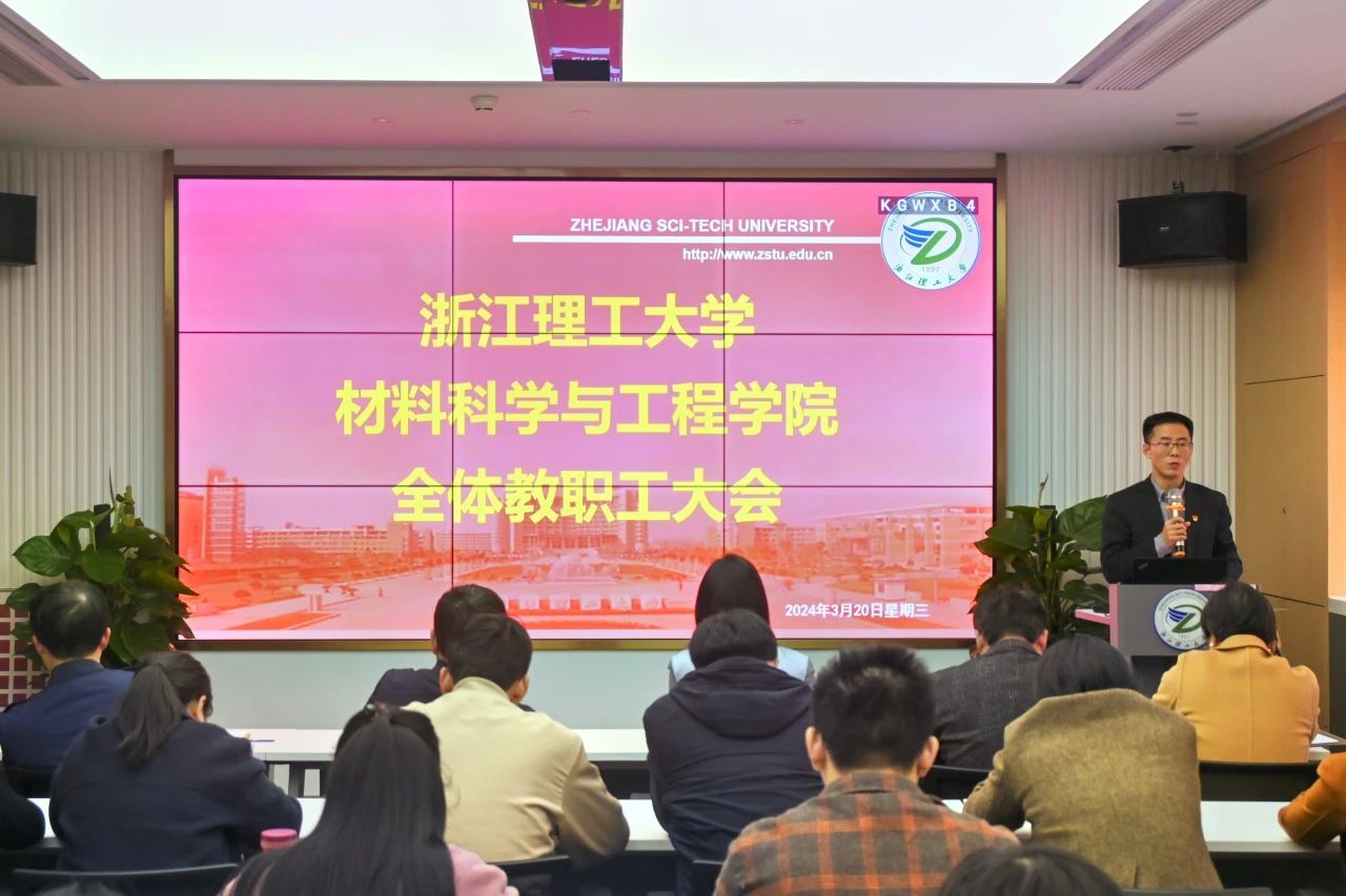 在24号楼415会议室召开全体教职工大会。会议传达了校党委书记赵全军、校长陈文兴在2024年学校工作部署会上的讲话精神。学院全体教职工参加会议。