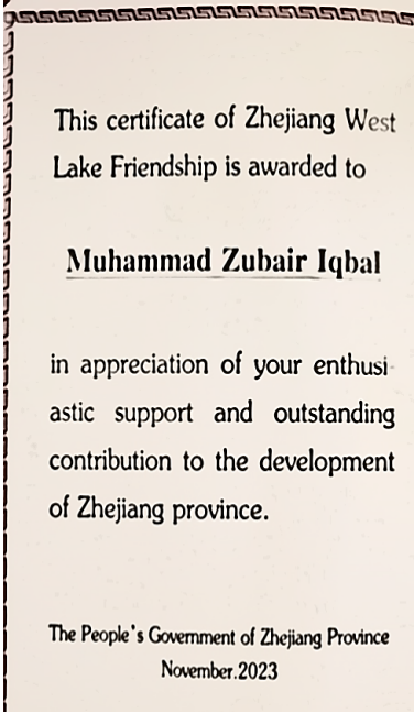 (学院M. Zubair Iqbal 教授被授予浙江省“西湖友谊奖”)