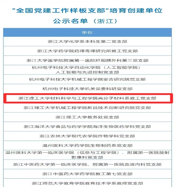 (高分子材料系教工党支部入选第四批“全国党建工作样板支部”培育创建单位)