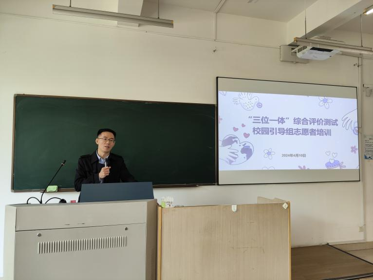 学院党委副书记周照东老师作动员讲话。他首先感谢全体校园引导组工作人员的积极参与和付出,并强调工作人员对于展示学校形象的重要意义。他鼓励大家要以高度的责任感和使命感投入到工作中,充分展现理工的精神风貌和学子风采。同时,他希望工作人员要注意自身安全、保持良好形象、注重团队协作、积极解决问题,协助学校高质量完成本次“三位一体”综合评价测试工作。
