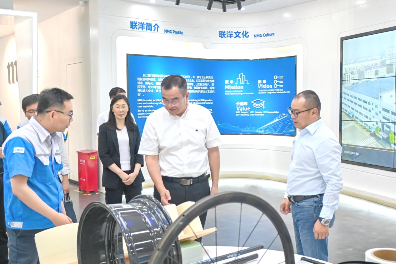 仪式前,姚菊明一行参观了浙江联洋新材料股份有限公司展厅,听取了公司无码a片、发展历程、业务范围及战略规划等介绍,观看了联洋新材最新科研成果。