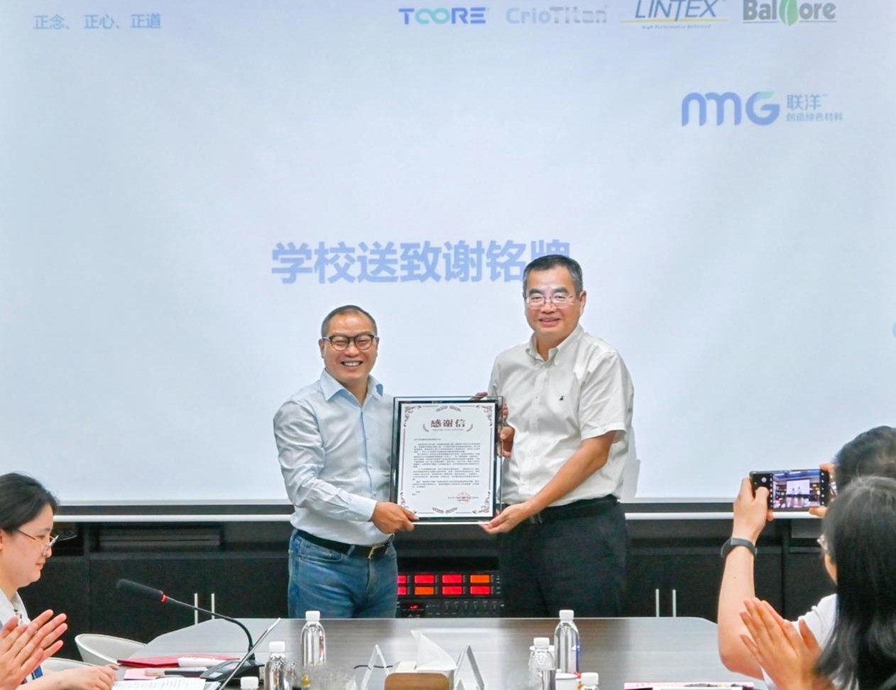 基于双方合作友好关系,联洋新材慷慨捐赠50万元设立“联洋新材教育基金”,用于学院高素质人才培养和经济困难学生资助,双方签署捐赠协议。对外联络办公室副主任应黎君代表学校颁发捐赠证书。