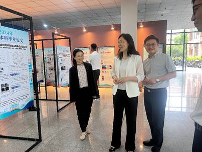 在25号楼一楼大厅举行主题为“菁材▪精彩”的本科毕业论文和学术成果展、课程思政建设成果展暨学院第四届“菁材”学术文化节开幕式。学院书记仰滢,副院长江国华、杨叶锋和各系系主任出席开幕式并参观展览。