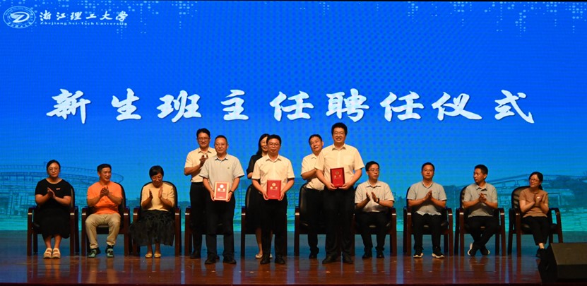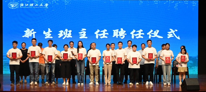 典礼上举行了新生班主任聘任仪式。班主任是知识的传授者,更是学生品德塑造的引路人,承担着引导学生全面发展、健康成长的重要任务。周照东宣读了班主任聘任名单,16名优秀教师、6名企业代表成为24级新生的班主任。全体本科生班主任、研究生班主任依次上台接受聘书,希望他们能为浙理材俊们在个人成长、科研创新、学科竞赛等方面提供全方位的指导和帮助。