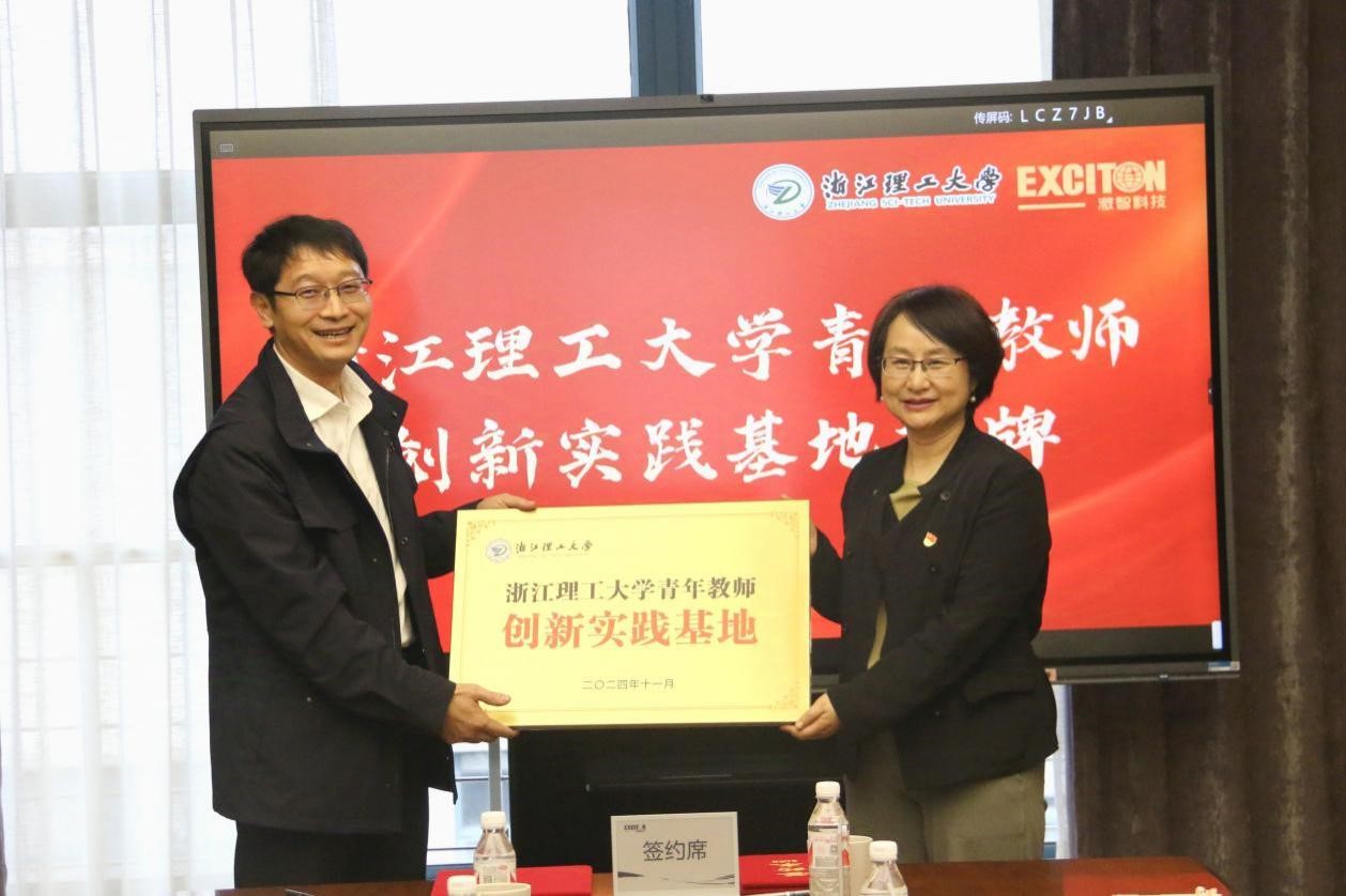 大学生实践实习基地授牌仪式,校党委副书记姚珺向宁波激智科技股份有限公司运营副总胡金福授牌。
