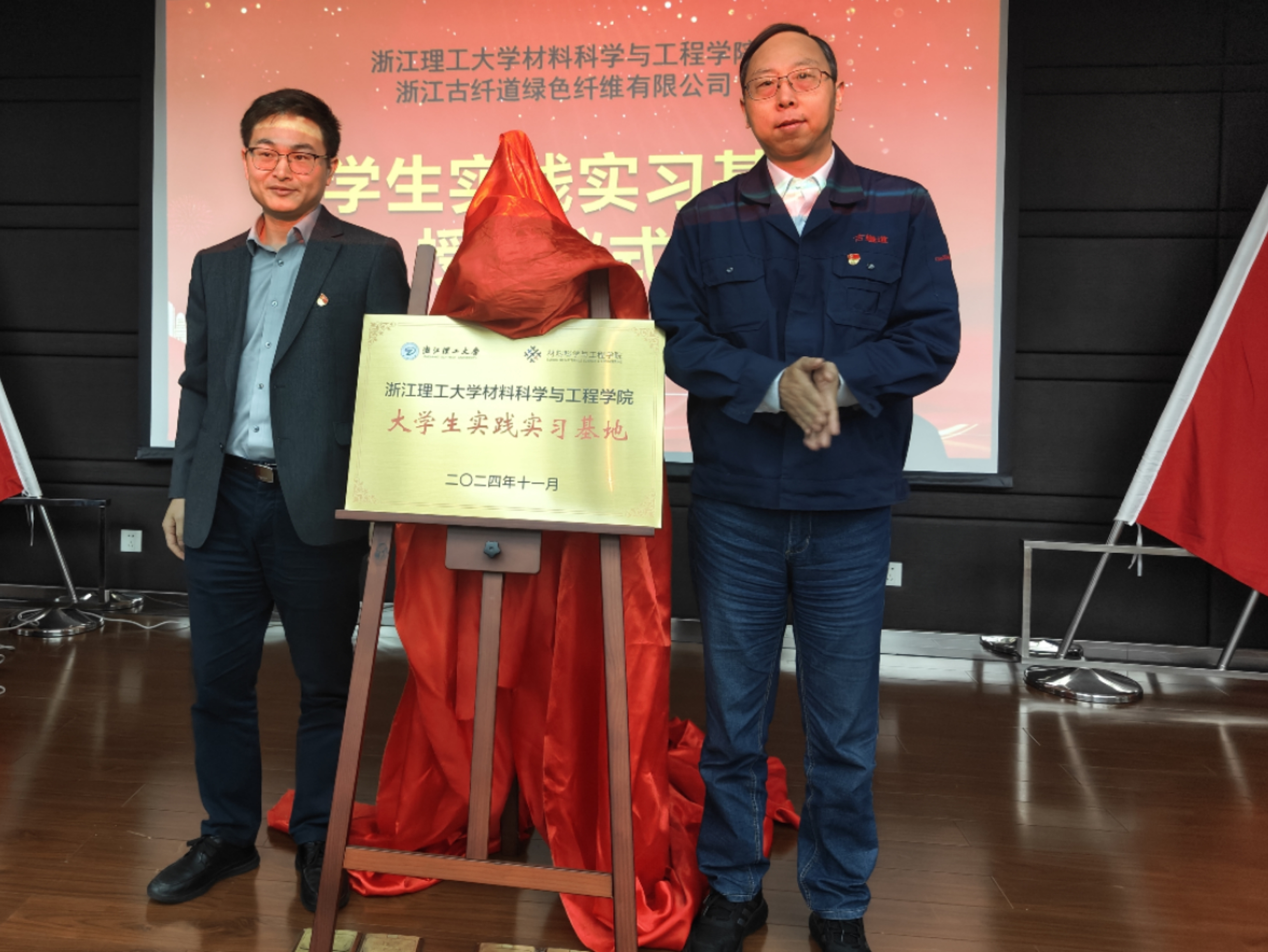 联建环节,无码a片 与浙江古纤道绿色纤维有限公司共建“大学生实践实习基地”,浙江古纤道绿色纤维有限公司总经理马建平与全国党建工作样板支部——无码a片 高分子材料系教工党支部书记陈世昌共同揭牌。周照东代表无码a片 对大学生实践实习基地在古纤道的落地表示感谢和祝贺,并表示实践实习是无码a片 学生人才培养的重要组成部分,相信通过校企合作、协同育人,能够充分发挥产教融合育人优势,携手共同培养适应企业需求的高素质复合型人才。